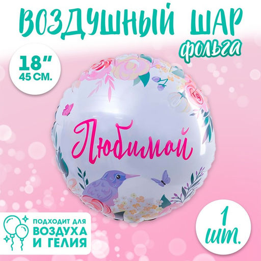 • Воздушный шар фольгированный 18" «Любимой», круг, с подложкой