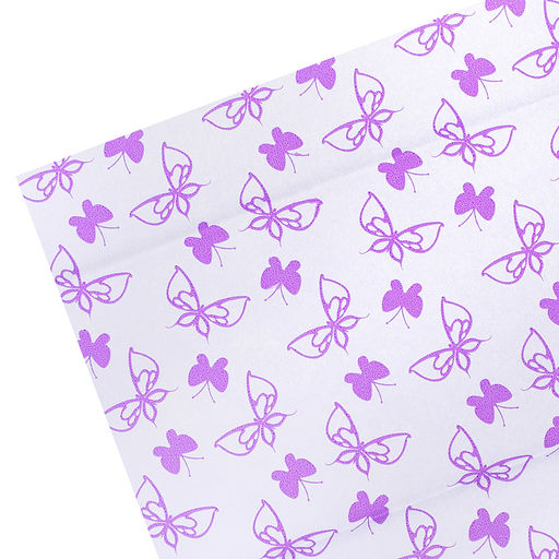 • Бумага тишью c орнаментом "Фиолетовые бабочки на белом фоне" 50x70 см, 17 г/м², 5 л, пластиковый пакет с европодвесом