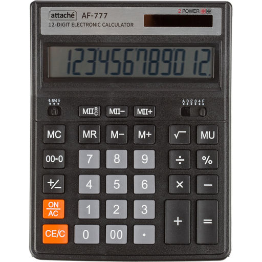 • Калькулятор настольный ПОЛН/Р Attache AF-777,12р,дв.пит,200x155мм, черный