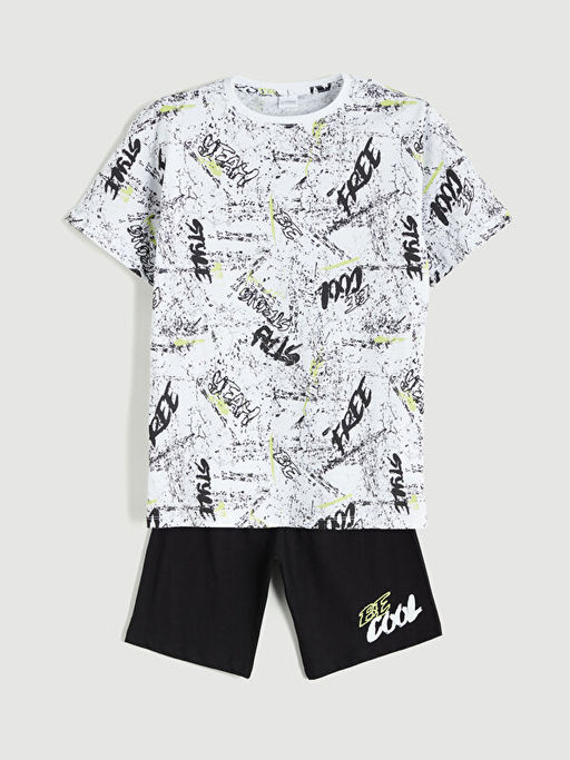 Bisiklet Yaka Erkek ?ocuk ?ortlu Pijama Tak?m?