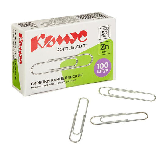 • Скрепки КОМУС оцинкованные, 50 мм, негофрированные, 100 шт/уп