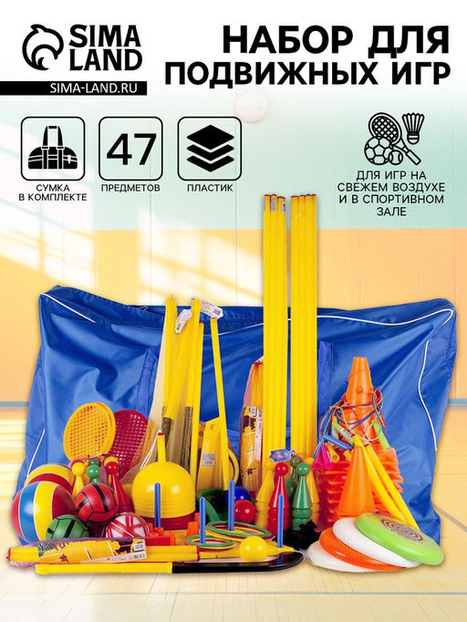 Набор для подвижных игр подойдёт для организации спортивных мероприятий и игр на свежем воздухе. Он рассчитан на дошкольников и детей постарше. Поможет весело и полезно провести время всей семьёй.ОсобенностиРазвивает физические способности ребёнка, ловкость, мелкую моторику и координацию движений.Ребёнок научится взаимодействовать с другими детьми и действовать сообща.Все предметы набора удобно хранить в большой сумке, которая идёт в комплекте.Мячи изготовлены из каучука. Все остальные предметы из качественного пластика.Набор для подвижных игр подойдёт не только родителям, но и педагогам. Учителям и воспитателям станет удобнее придумывать и проводить спортивные занятия в школах и детских садах. С таким набором детям понравится играть в подвижные игры. Ведь каждый ребёнок найдёт себе активность по душе. Для кого: Унисекс. Возраст: От 3 лет.