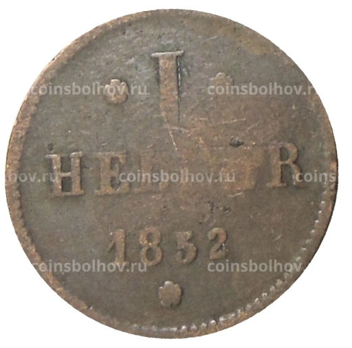 • Монета 1 геллер 1852 года Германские государства  Гессен  Дармштадт