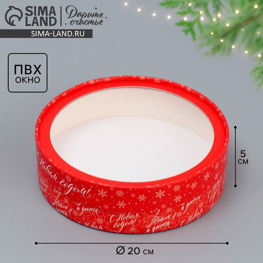 Коробка новогодняя для макарун тубус с окном «С Новым годом», 20×20×5 см