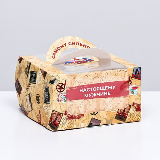 Коробка под бенто - торт с окном «Самому сильному», 14×14×8 см