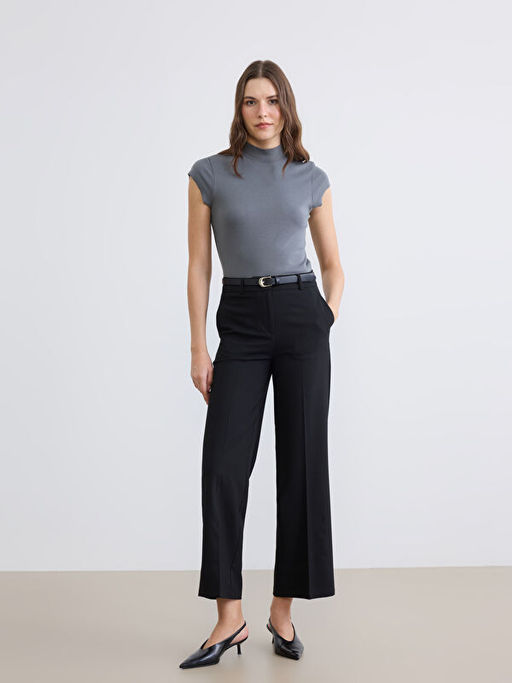 Beli Kemerli Standart Fit Kad?n Kuma? Pantolon