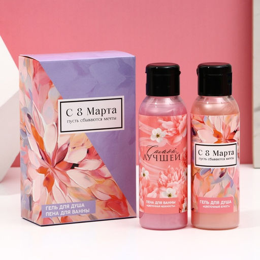 • Подарочный набор «8 Марта!»: гель для душа и пена для ванны, 2×100 мл, Чистое счастье