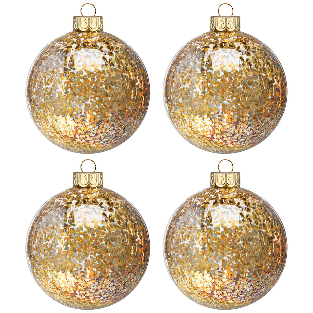 • Набор 4 стеклянных новогодних шаров на елку 8*8 см, золотая россыпь