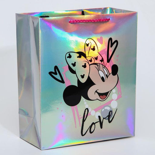 Пакет голография горизонтальный «Love», Минни Маус, 25 х 21 х 10 см