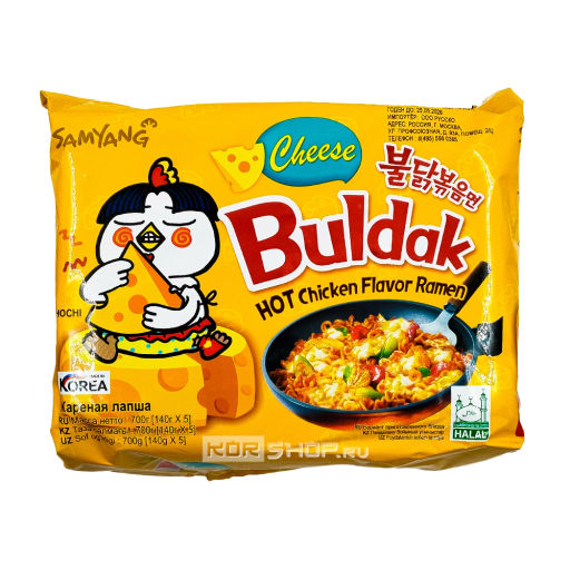 Блок (5 шт.) Лапша б/п со вкусом сыра и курицы (острая) Samyang это 5 порций любимой лапши от корейского бренда всемирно известного короля раменов. Насыщенный вкус сыра гармонично сочетается с аппетитными нотками жареной курочки, а ощутимая острота добавляет блюду особый, корейский характер. Лапша готовится всего несколько минут и отлично утолит голод дома, в офисе или в поездке. Ее можно по желанию дополнить половинками вареного яйца, хлопьями водорослей нори, колечками зеленого лука.