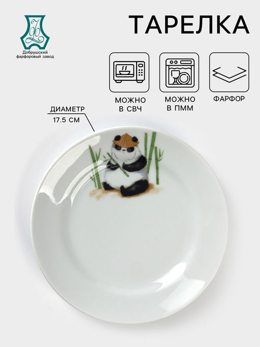 Тарелка детская Добрушский завод «Панда», d=17.5 см, фарфор, белая