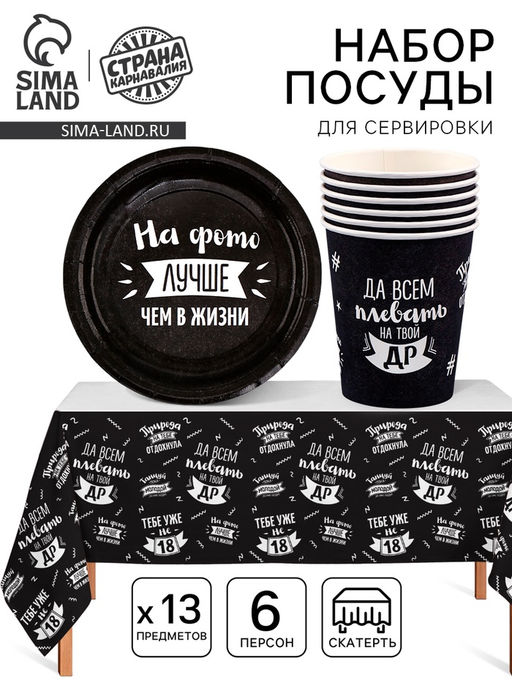 Количество персон: 6. В наборе, шт.: 13. Рисунок: Да. Тематика праздника: День рождения. Бесплатная доставка: Да. Наша разработка: Да.