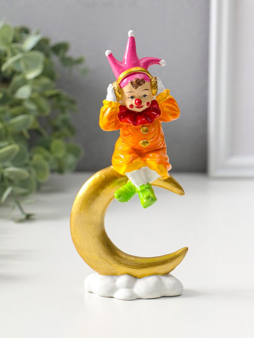 Сувенир полистоун "Клоун в наушниках на золотом месяце" яркий разноцветный 16,5 см