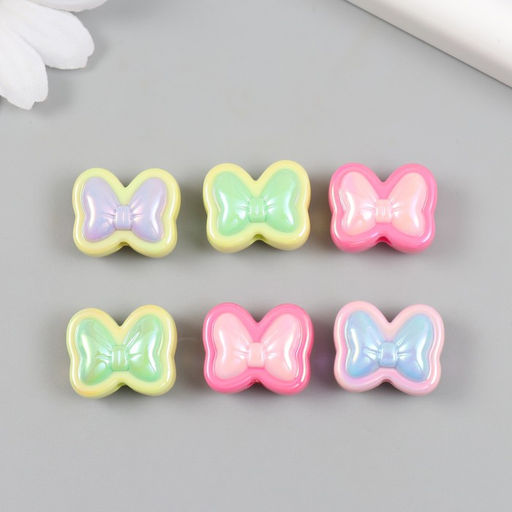 • Бусина для творчества пластик, набор 6 шт., Бант, цветная с перламутром, 1.7?2 см, МИКС