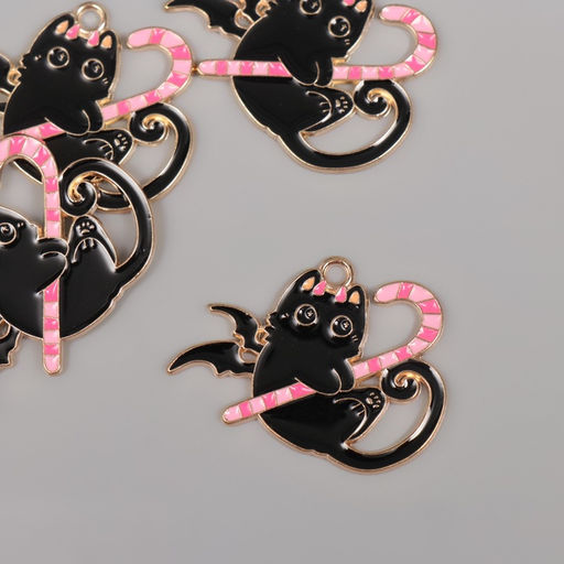 Цена за 4 шт. Декор для творчества металл, эмаль «Чёрный котик с конфетой», чёрно-розовый, 2.4×3.1 см