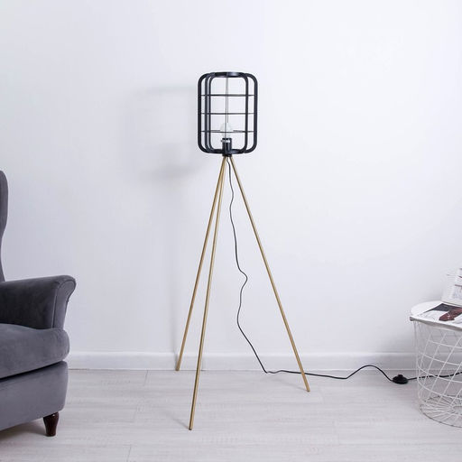 • Торшер «Лофт», E27, 40 Вт, чёрный-золото, 24.5×24.5×140 см