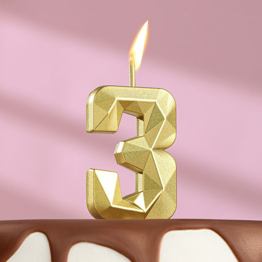 • Цена за 3 шт. Свеча в торт на шпажке «Алмаз», цифра 3, золотая, 5 см