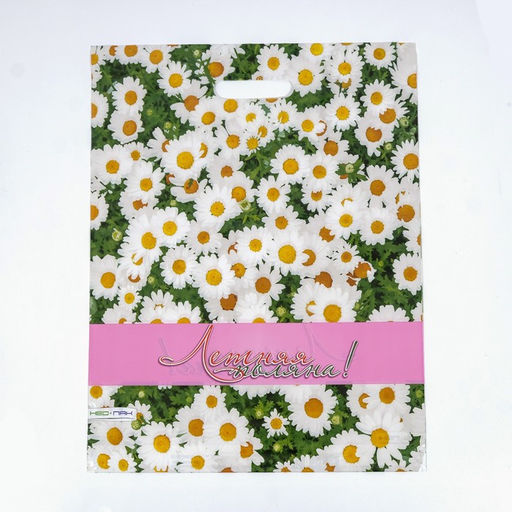 * Сочный летний дизайн: Яркие полевые цветы на зелёном фоне создают настроение летнего луга. Такой пакет особенно уместен для подарков на 8 Марта, дни рождения или пикники.