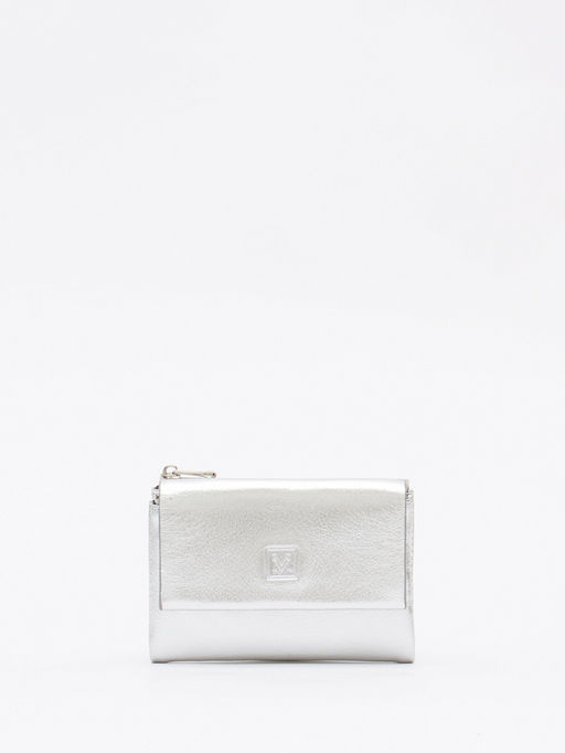 На развороте имеет один отдел для купюр и семь карманов-прорезей для кредитных карт, четыре открытых кармашка.­