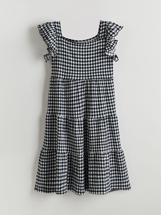 Kare Yaka Ekose K?z ?ocuk Elbise