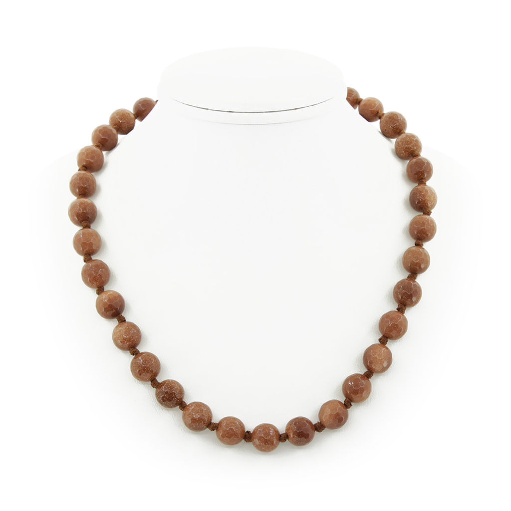 Авантюрин коричневый, круглые граненые 12мм, "Шарм" бусы длиной 53см
