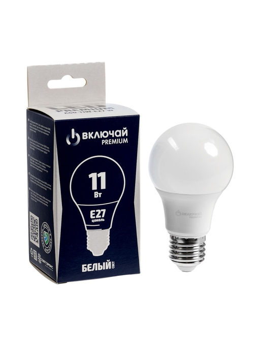 • Цена за 2 шт. Лампа светодиодная Включай, А60, 11 Вт, E27, 1045 Лм, 4000K, IP20, свечение нейтральное белое, матов