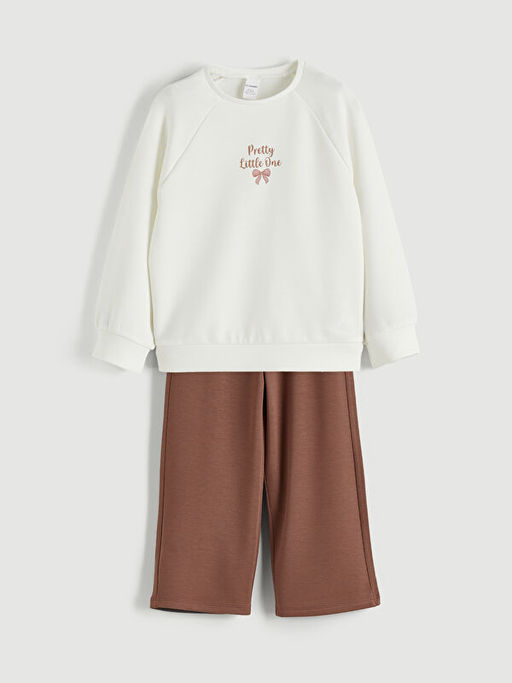 Bask?l? K?z ?ocuk Sweatshirt ve Pantolon 2li