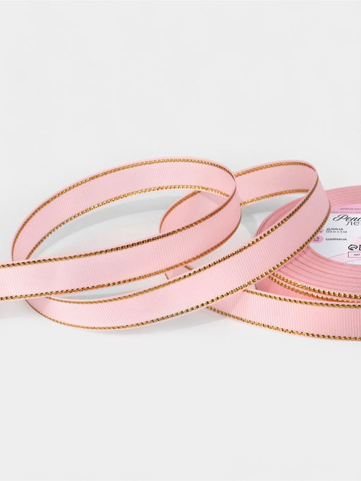 • Лента репсовая, с золотым люрексом, 15 мм, 23±1 м, светло-розовая №004