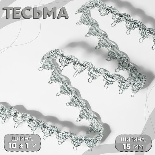• Тесьма декоративная, 15 мм, 10 ± 1 м, цвет серебряный