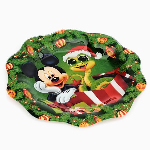 • Тарелка стеклянная новогодняя «Новогодний сюрприз», Микки Маус, 23 см