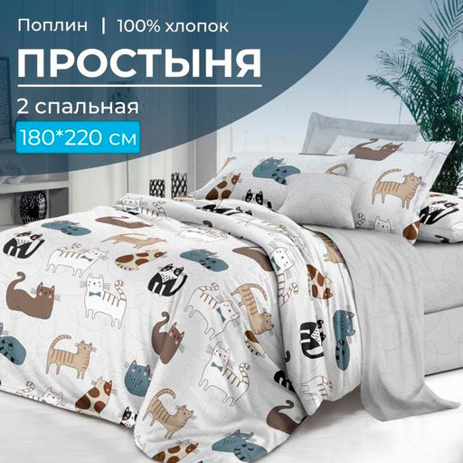 Артикул: Простыня 2-спальная, поплин (Любимцы (компаньон))