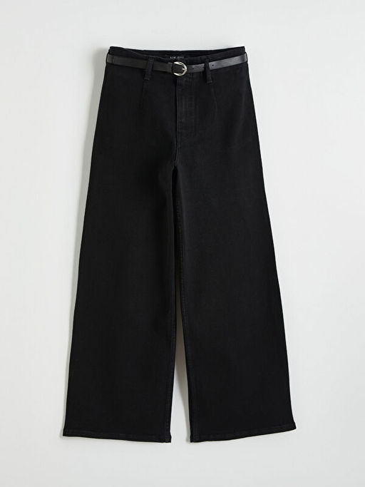 Beli Kemerli Wideleg Kad?n Jean Pantolon