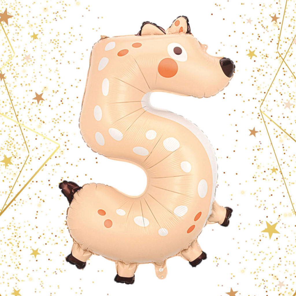 Шар фольгированный 40" (100 см) Цифра 5 "Весёлый зоопарк"­
