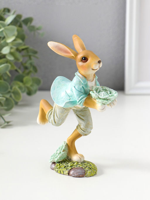• Фигурка полистоун Зайчик в голубом пиджаке с декоративной капустой, 15 см