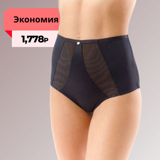 Трусы-макси женские с высокой линией талии. выполнен из эластичного полотна и эластичной сетки. Украшение- медальон с логотипом COQUETTE REVUE.