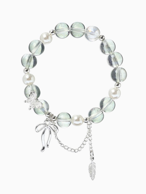 • Браслет с подвесками "Сахарный" перо, бант, шар №10/8, цвет серый радужный в серебре