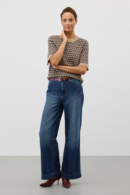 Джемпер с коротким рукавом в кантри-стиле, изготовленный из высококачественной пряжи с применением передовой технологии смешанных волокон. Изысканное сочетание шерсти и акрила создает непревзойденный комфорт: модель деликатно подчеркивает силуэт, обеспечивает нежное прикосновение к коже и сохраняет безупречный внешний вид..Состав: 70% акрил, 30% шерсть