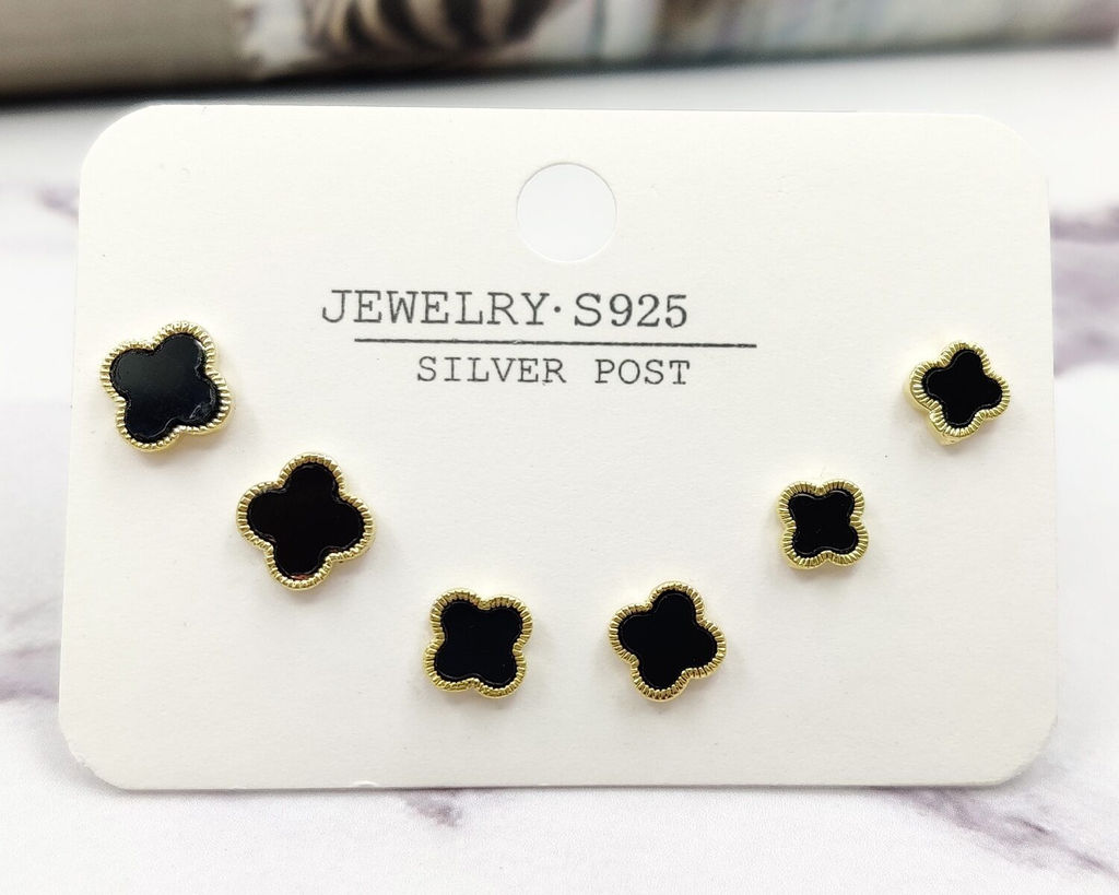 В комплект входят 6 гвоздиков которые можно одевать ассиметрично,на одно ухо, или сочетать между собой в зависимости от Вашего образа.
