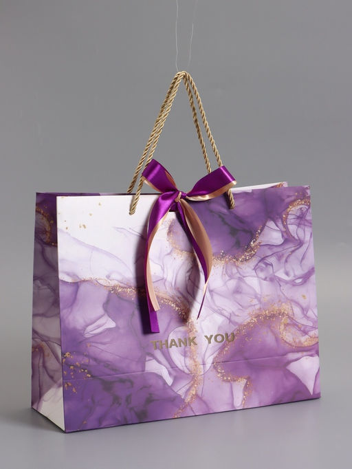 • Пакет подарочный ламинированный «Мрамор», фиолетовый с бантиком, 32×25×11 см