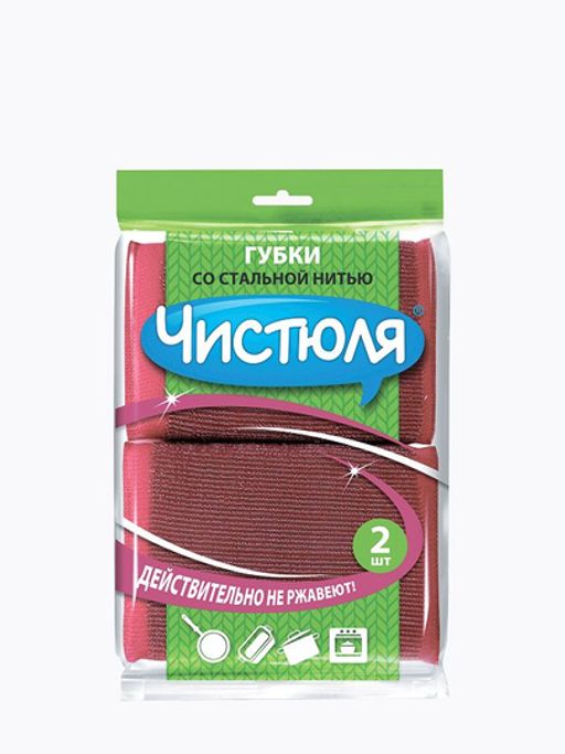 Внешний вид товара может отличаться от фотографий на сайте. ЧИСТЮЛЯ губки хозяйственные со стальной нитью (2шт)