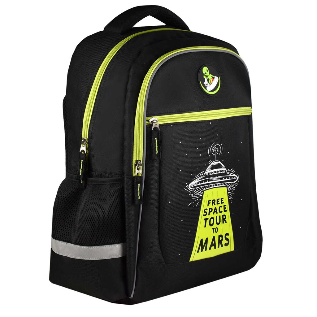 Рюкзак школьный арт.58428/ 14 НЛО (31х42х15 см, полиэстер, резиновая нашивка, шелкография, 1 отделение (-я), молния, тип спинки: формоустойчивая спинка из сетчатой ткани и поролона, тип дна: с пластиковыми ножками, ПЭТ-пакет)