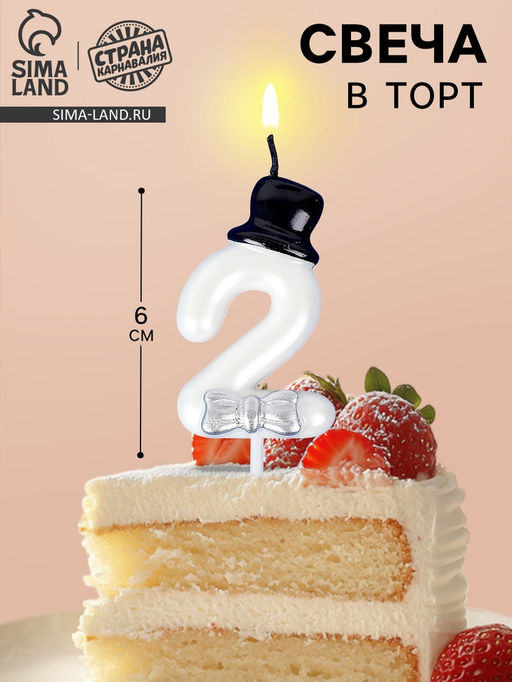 • Цена за 3 шт. Свеча для торта «Джентельмен», цифра 2, белая