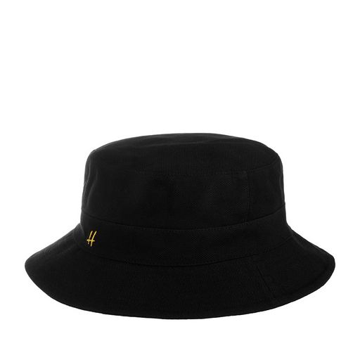 Летняя панама CREEK от Herman. Модель сшита из черного хлопка. Сбоку желтыми нитками вышита первая буква названия бренда. Внутри - шелковистая ярко-синяя подкладка с изображением ананасов. Панама обладает защитой от солнца UPF +50. Ширина полей - 5 см, глубина панамы - 12 см.