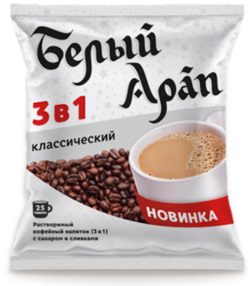 Белый Арап. Кофе 3 в 1. Классический карт.пачка, 25 пак.
