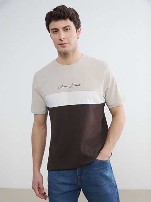 Bisiklet Yaka Renk Bloklu Penye Erkek Ti??rt