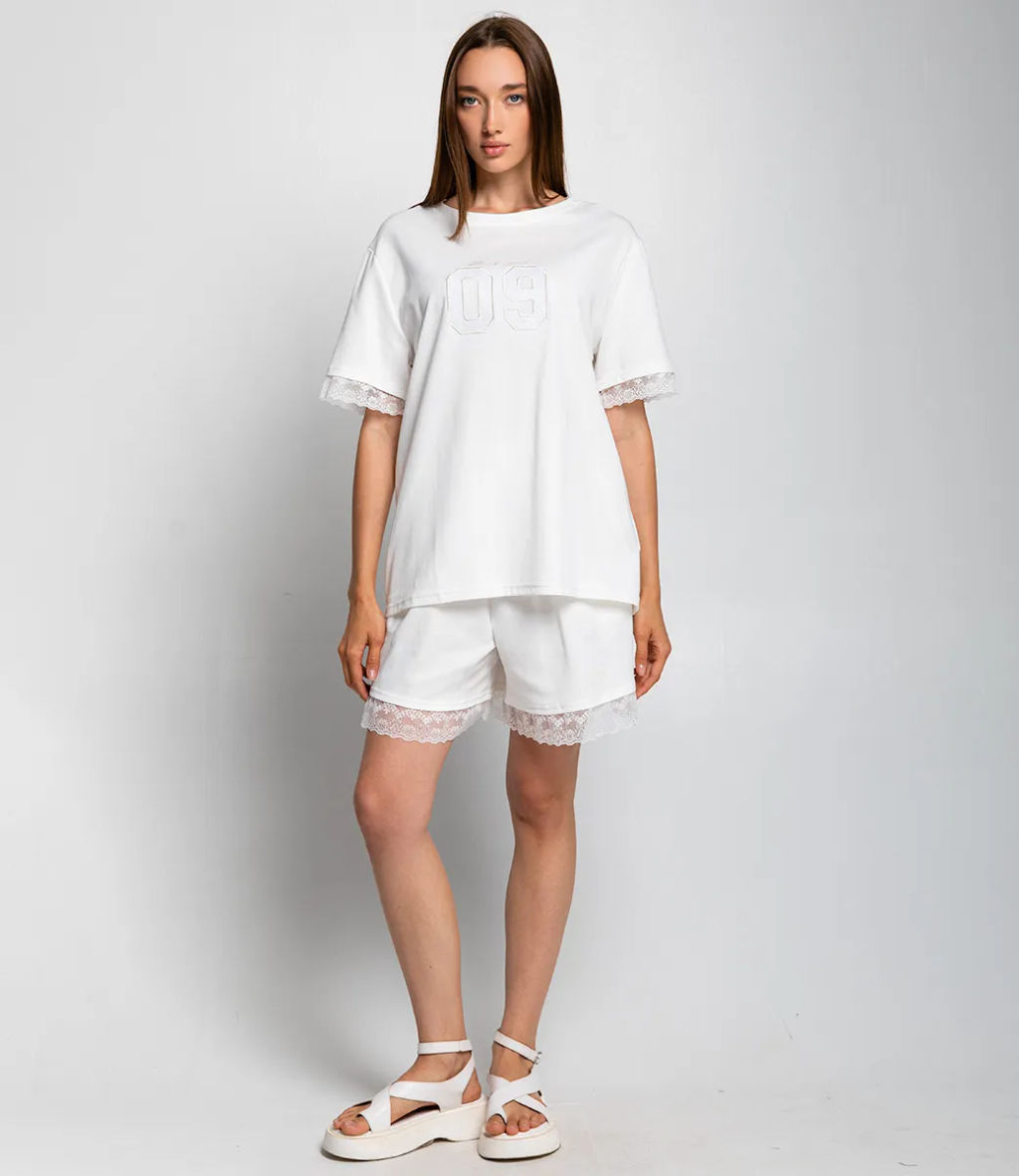 Описание товара Костюм это безусловный must-have для каждой женщины, стремящейся сочетать комфорт и стиль. Этот комплект состоит из удлинённой свободной футболки с короткими рукавами и шорт, что делает его идеальным выбором для летних дней и активного отдыха. Футболка, выполненная из высококачественной ткани с составом 65% хлопка, 30% полиэстера и 5% эластана, обеспечивает мягкость и эластичность, позволяя модели красиво облегать фигуру и в то же время оставляя полное ощущение свободы. Классический округлый ворот подчеркивает нежность образа, а крупная цифра на передней части придаёт футболке уникальность и современный вид. Шорты имеют свободный крой, что делает их невероятно удобными для повседневной носки. Они украшены тонким кружевным кантом на рукавах и по низу, что добавляет легкости и женственности в общий образ. Такой акцент оживляет комплект и делает его особенно привлекательным для современных девушек, ценящих детали. Материал, из которого изготовлен костюм, отличается отменным качеством и прост в уходе. Даже после многократных стирок, он не утратит своей первоначальной привлекательности, позволяя вам наслаждаться этим стилем долгое время. Обратите внимание на разнообразие доступных цветов, чтобы каждый ваш клиент смог выбрать именно тот вариант, который идеально впишется в их гардероб. Для уверенности в размере мы представили на сайте таблицу, что поможет вашим покупателям легко определиться с выбором. Предложенная нами цена является доступной и привлекательной для оптовых покупателей, что делает этот костюм отличным дополнением в ассортимент вашего магазина. Подарите своим клиентам возможность быть стильными, комфортными и уверенными в себе с этим замечательным костюмом, который прекрасно подойдет как для городской суеты, так и для отдыха на природе! Рост модели 168 см., 85-63-92.