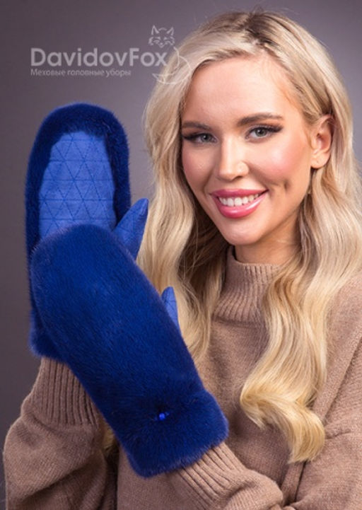 Артикул: Варежки норка замша индиго