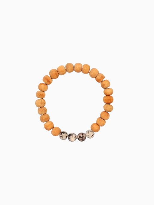Браслет из сандалового дерева с агатом, длина 18 см, чёрный