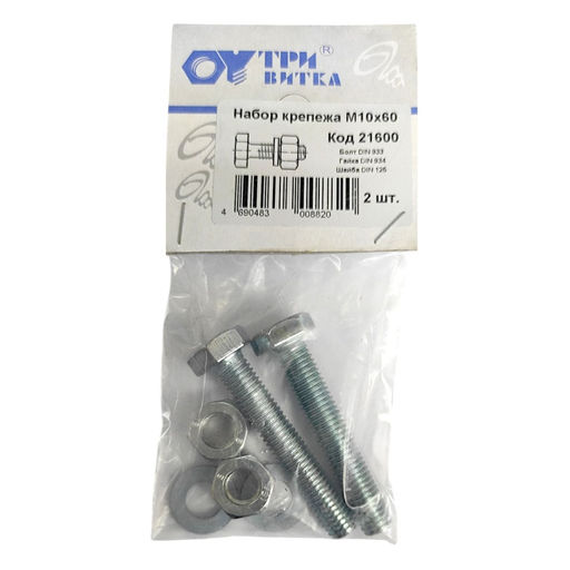 Набор крепежа (болт, гайка, шайба)10х60мм (2шт.)