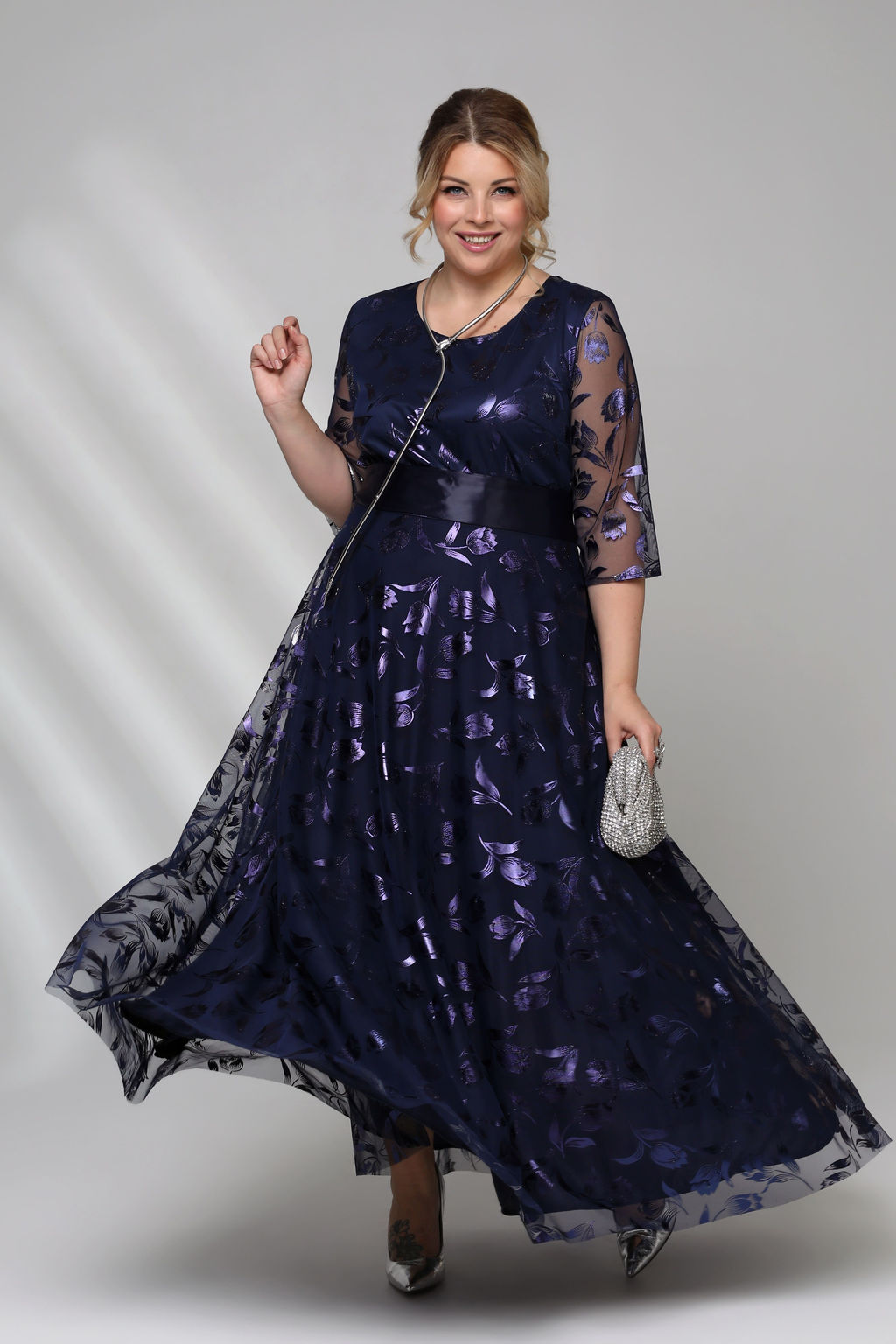 Элегантное платье из мягкой струящейся ткани - подчеркнет вашу женственность и изящность. Модель без подплечников, имеет прозрачные рукава ?. Полуприлегающий верх идет с классическим круглым вырезом. Платье отрезное по линии талии. Вытачки на груди и по спинке обеспечивают оптимальную посадку по фигуре. Линия талии подчеркнута с помощью пояса, который можно завязать по желанию (в виде банта). Свободная юбка создает женственный силуэт и искусно обыгрывает бедра. Фатиновый верх платья с флоковым напылением в оригинальный принт добавляет модели воздушности и лёгкости. Яркий клатч и туфли на каблуках станут идеальным дополнением к нарядному образу.
